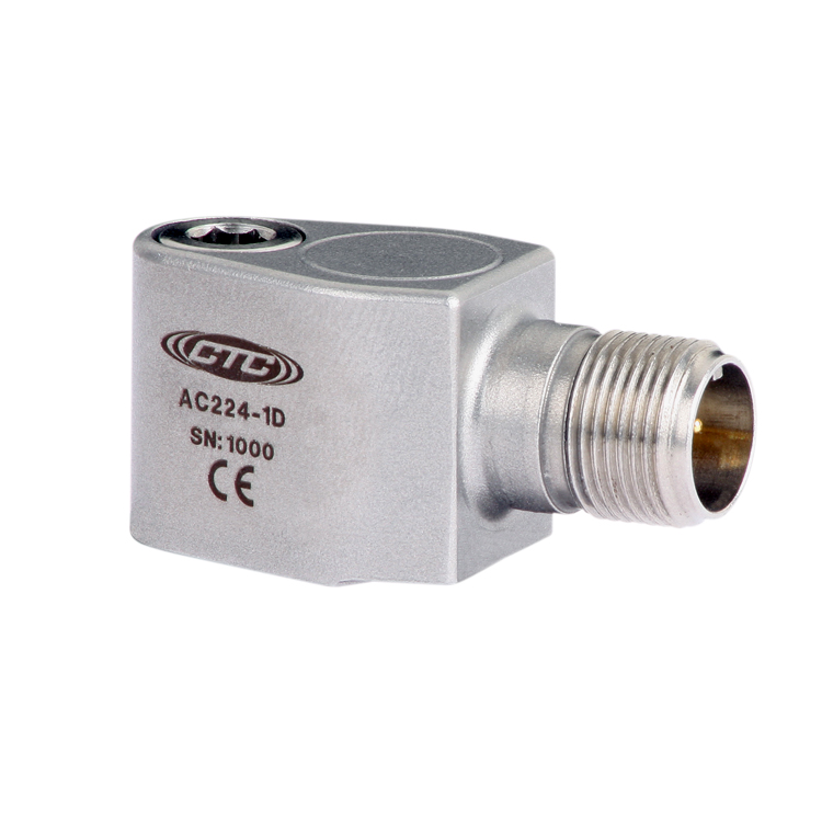 CTC AC224系列振動傳感器,微型設計,10 mV/g靈敏度,量程±500 g,頻響1-15000Hz,316L不銹鋼外殼材質,2針mini-MIL連接器